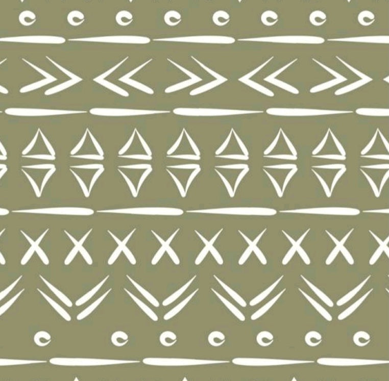 Inspired by African clay marks and ancient textiles, this olive-toned print hums with heritage. Each line echoes movement. Dance, story, tools carved by hand. A remembering of where we come from, stitched into something your baby can wear daily.