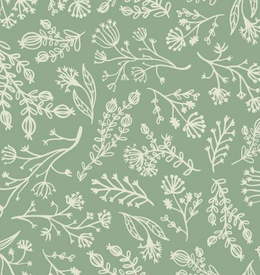 A quiet celebration of the earth’s gentleness. Sage Meadow drifts with wild sprigs and meadow herbs, evoking the calm of open fields kissed by morning light. Its soft green base and delicate ivory botanicals bring a sense of grounded serenity - a reminder of the slow, living rhythm of nature.