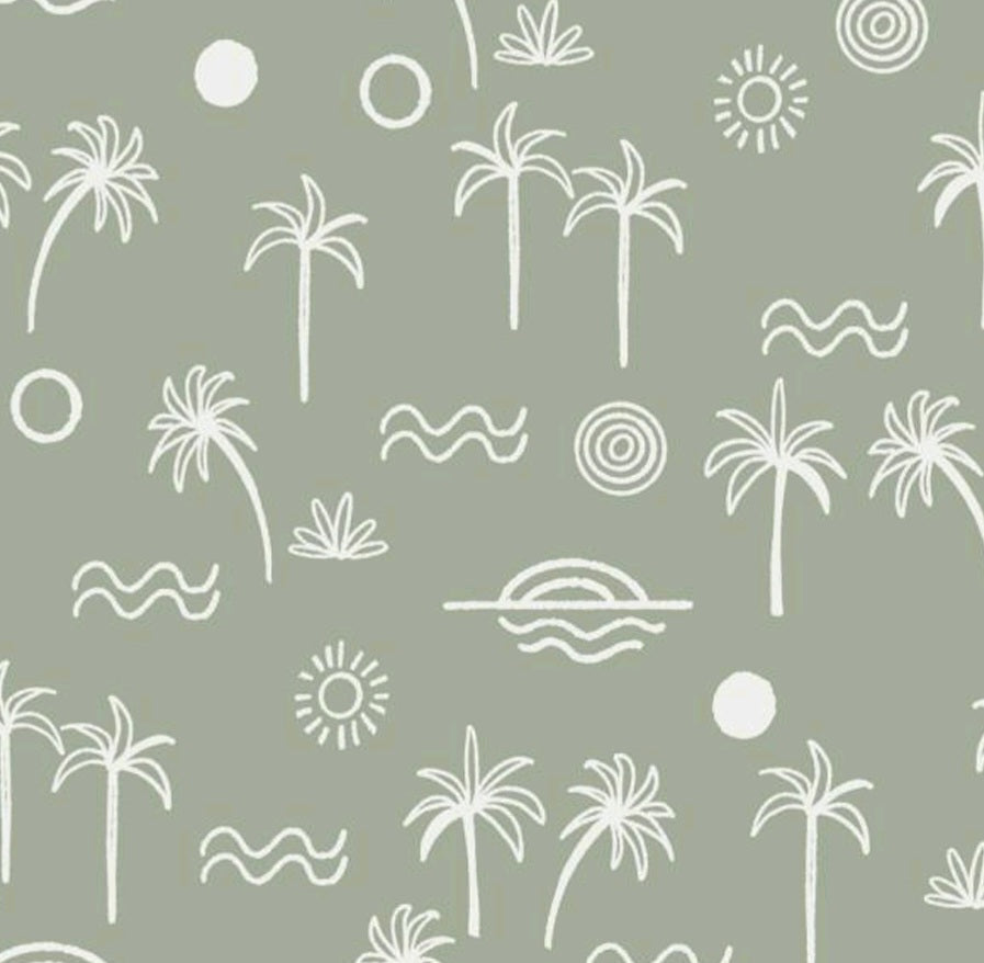 A nostalgic ode to endless summer. Salty Days captures the slow rhythm of sun-soaked afternoons, sea breezes, and barefoot wanderings. The hand-drawn palms, waves, and suns evoke the gentle simplicity of coastal childhoods, where time drifts with the tide and every day feels like a memory in the making. Rendered in a muted sage palette with soft, organic lines, this print carries the calm of the shoreline and the warmth of salt-kissed skin. Designed for the little dreamers who were born with sand between their toes.